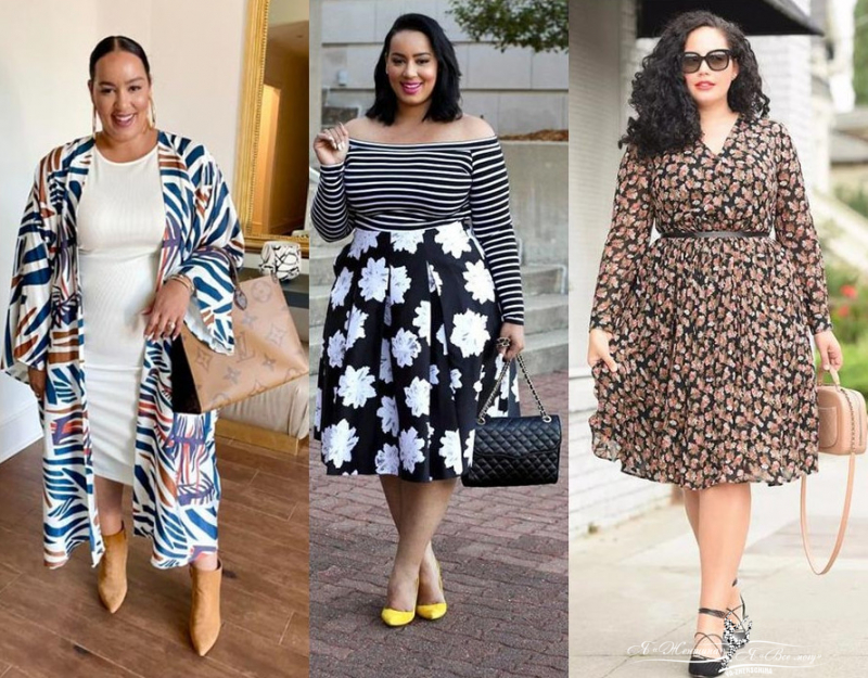 -  Женственные платья из шифона. Ткань для полной фигуры может быть либо плотной, либо струящейся, тогда все недостатки будут скрыты. Лучше выбирать платья из шифона с принтом, потому что целлюлит и складки однотонная ткань скрывает хуже.