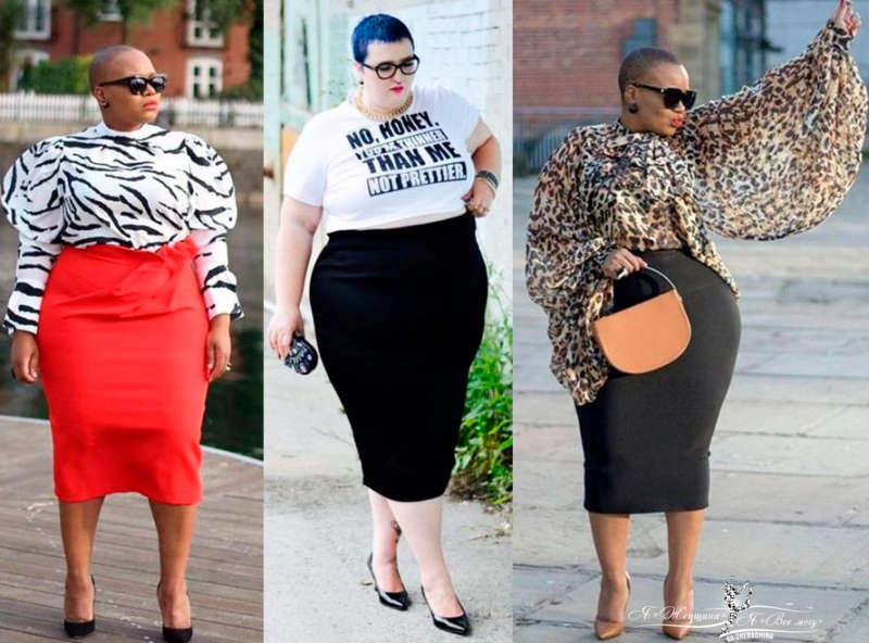 Чтобы образ с юбкой-карандаш был современным, сочетайте ее с футболкой с надписью, блузой с объемными рукавами, жабо или бантом спереди.