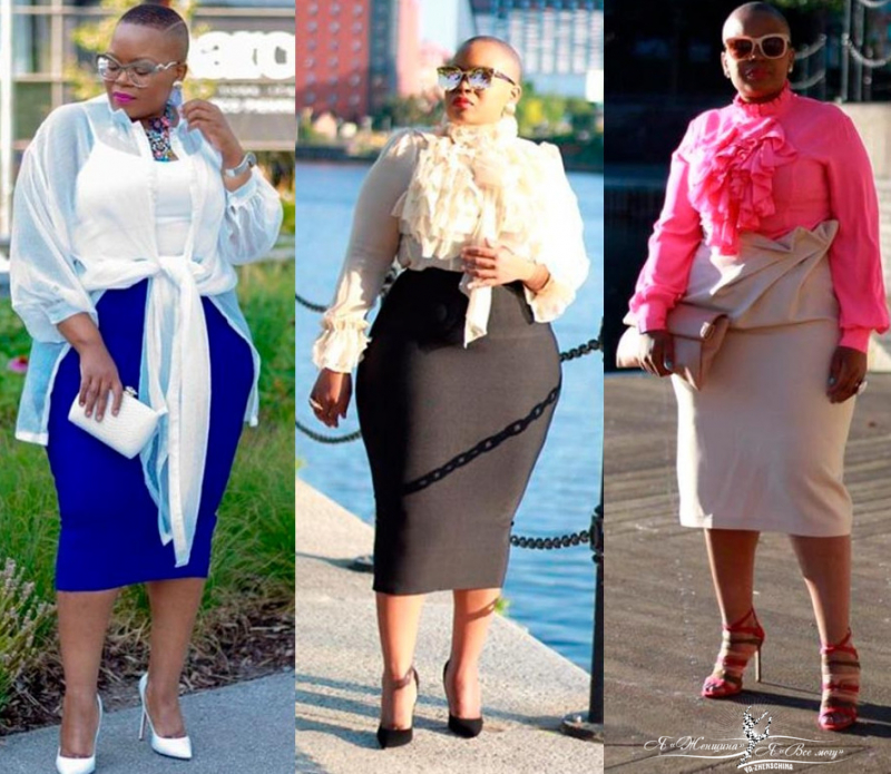 Достоинством полной фигуры считается грудь, платья и блузы с V-образным вырезом обязательно должны быть в гардеробе женщины с пышными формами.