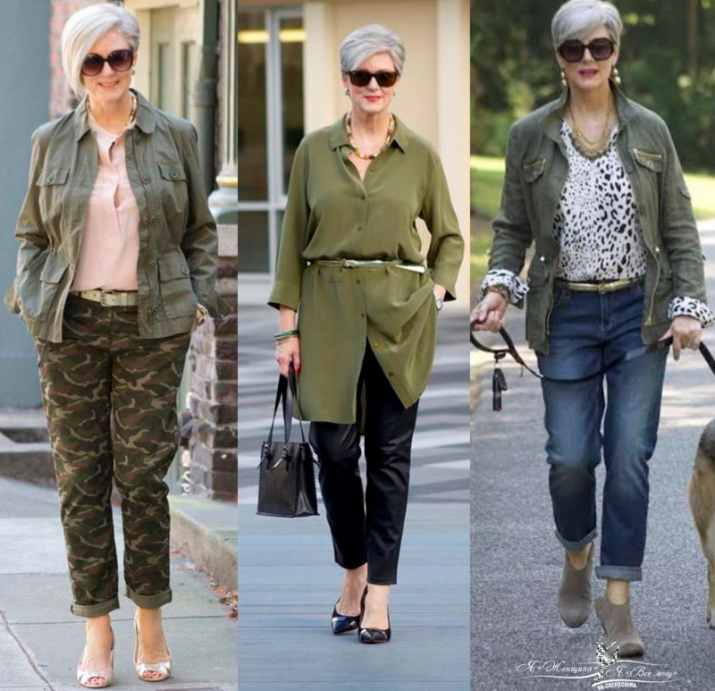 Бороться с возрастом и лишними килограмма помогают маскулинные вещи. Например, грубые армейские ботинки, куртки и пальто в стиле милитари, брюки из плотного денима с камуфляжным принтом или брюки карго цвета хаки.