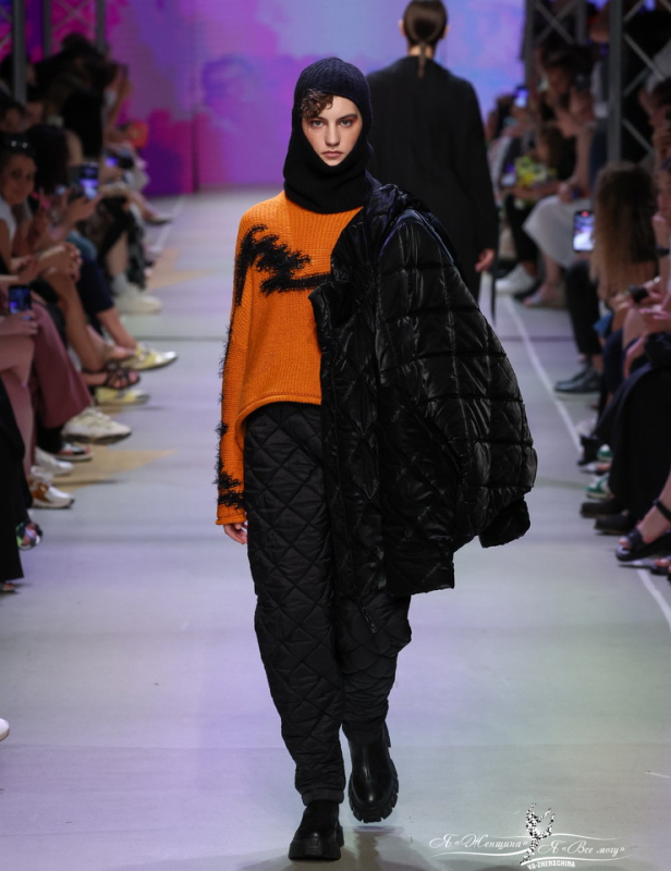 Пальто и куртки из стёганых тканей, широкая палитра уникального трикотажа со сложными авторскими рисунками и переплетениями, яркие балаклавы, брюки расслабленного силуэта, платья из вискозного джерси – нарядная и одновременно комфортная одежда для взрослой, искушенной женщины, которая украшает и позволяет чувствовать себя уверенно.