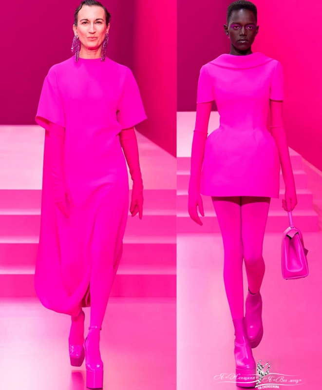 Яркая цветовая гамма кажется более уместной в теплом сезоне, но осенью и зимой 2022-2023 образы в оттенках фуксии снова числятся в модных трендах. В новой коллекции Valentino фуксия самый главный цвет, более 40 образов! Кроме того, холодный сезон сам по себе серый, вся природа вокруг лишена ярких красок, так давайте с помощью яркого платья наполним энергией свою жизнь и подарим немного позитива окружающим.