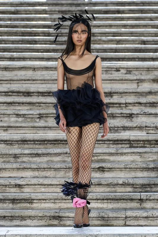 Прошлым вечером в Париже свою новую кутюрную коллекцию для Valentino представил Пьерпаоло Пиччоли — она получила название The Beginning. В этом сезоне дизайнер вновь активно работает с цветами: в прямом и переносном смысле. На подиуме мы увидели буйство ярких красок, а также отсылки к образам живых цветов: модели выходили на подиум в головных уборах-бутонах. Что касается оттенков, то тут Пиччоли показал богатую палитру, которая плавно сменялась вместе с настроением: в начале пышные платья, накидки и костюмы были окрашены в алый, затем появился уже фирменный розовый, который сменился на фиолетовый, кислотно-зелёный и оранжевый. «Отдыхом» от красок стали прозрачные платья и топы серебристого цвета: сияние — ещё один большой тренд коллекции.