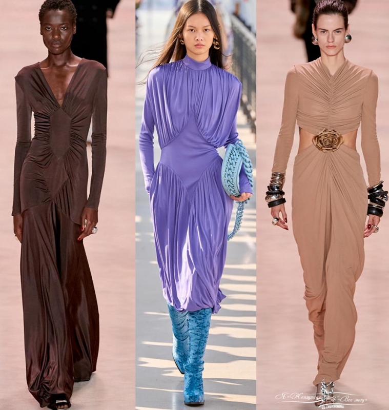 - Драпировки. Особенно современно смотрятся на коже, атласе или трикотаже.