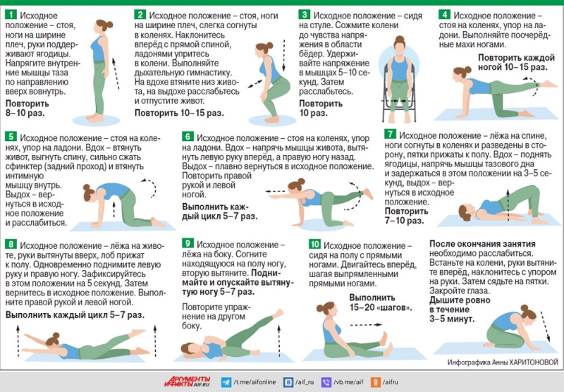 Дряблые мышцы снаружи выглядят некрасиво и бросаются в глаза. Ослабленные мышцы внутри не так заметны, но при этом они сулят женщинам серьёзные проблемы. Как их избежать?Рассказывает врач-эндокринолог, специалист по спортивной медицине Алексей Калинчев. – При несостоятельности мышц тазового дна снижается тонус мускулатуры, которая удерживает органы малого таза (матку, мочевой пузырь, прямую кишку) в правильном положении. Из-за этого со временем происходит их опущение, вызывающее нарушение функции этих органов. Укрепить тазовые мускулы можно с помощью лечебной физкультуры. Специальные упражнения улучшат кровоснабжение органов малого таза, позволят предупредить и избавиться от недержания мочи, опущения матки, геморроя. Также они будут полезны для профилактики воспалительных заболеваний женской половой сферы, подготовки к беременности (но не во время самой беременности) и для улучшения интимной жизни.