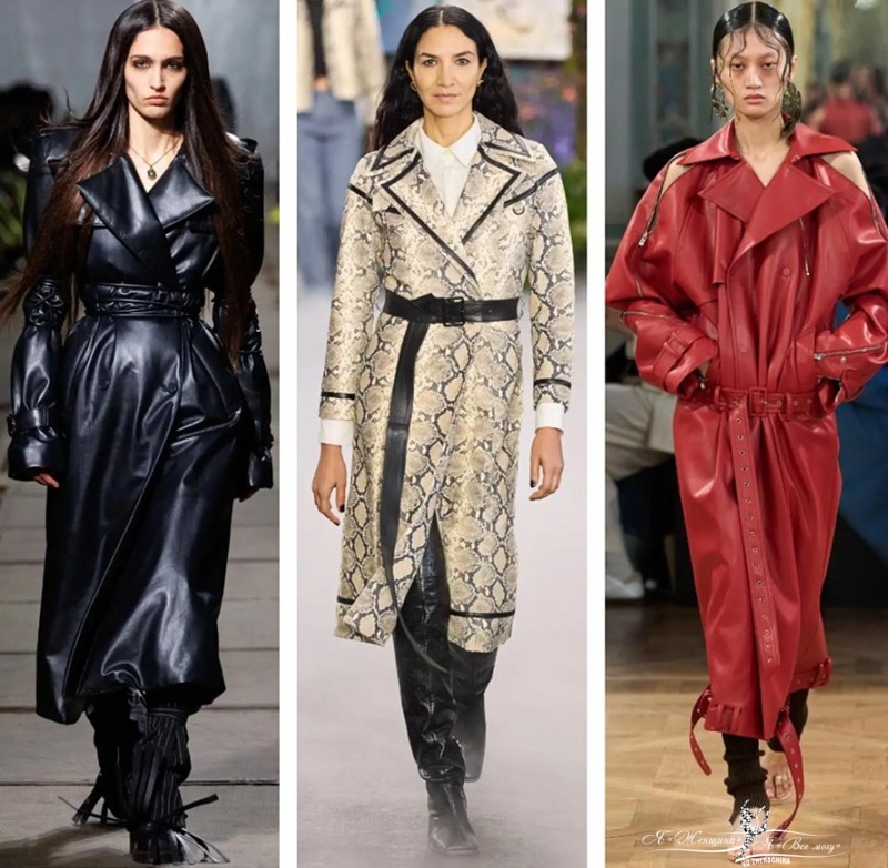 Актуальны черные плащи, бордовые и с анималистичным принтом. У моделей много лишних деталей в крое и декоре.
