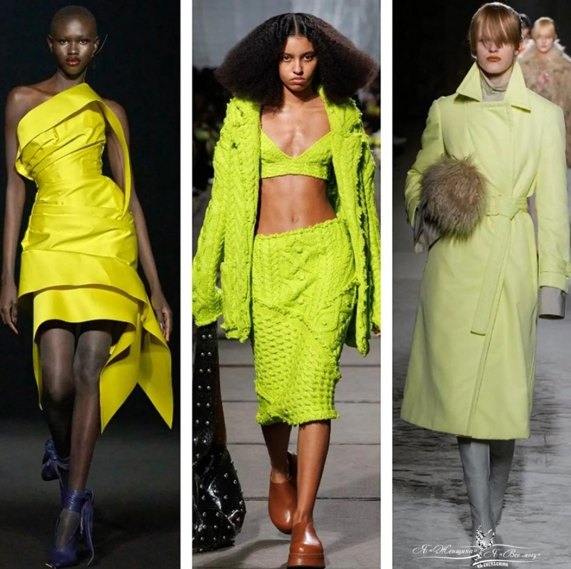 Если нужно сшить эффектное платье, но модель не приходит на ум, попробуйте оттолкнуться от трендового цвета. Приглушенный или неоновый лайм сразу бросается в глаза.