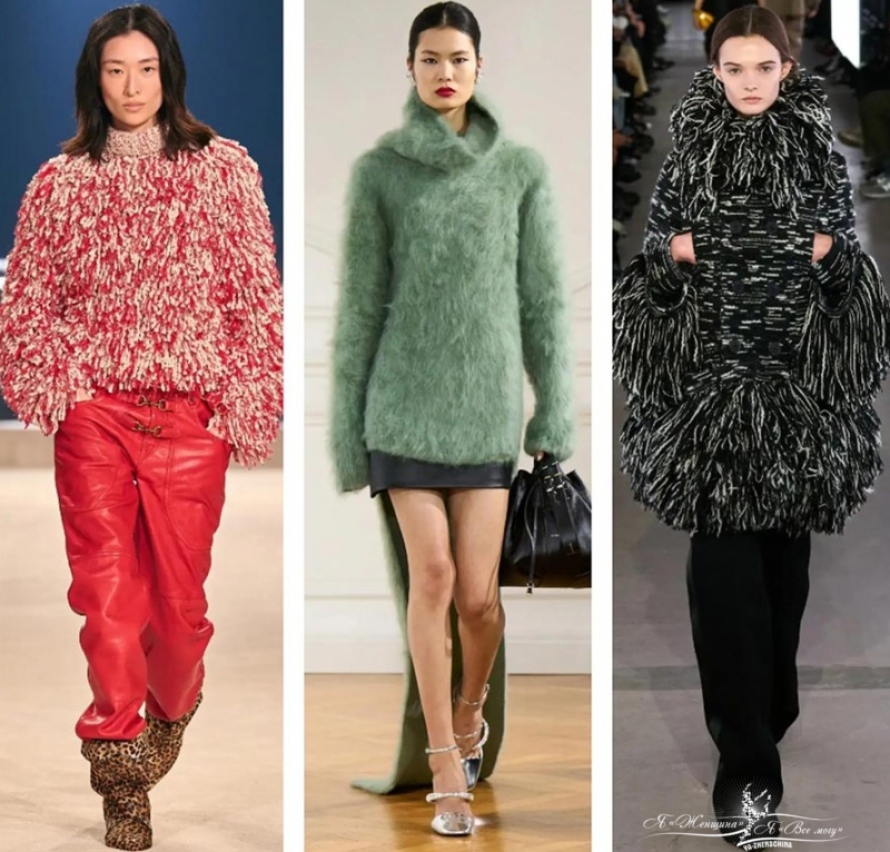 Играйте с фактурами, сочетайте мохнатые свитера с кожаным низом.