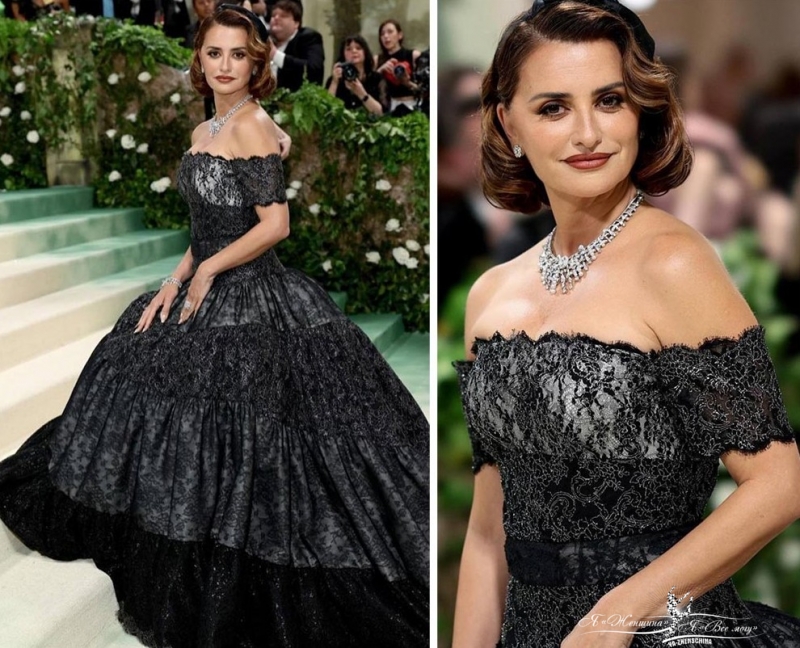 На Пенелопа Крус платье из кружева от Chanel в духе Анны Карениной или Скарлетт.
