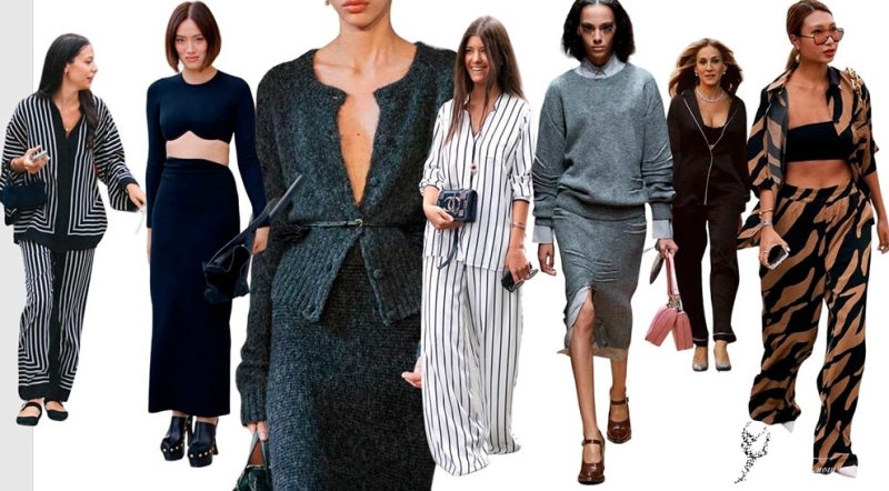Если нужно собрать образ за пять минут, то пусть у вас в гардеробе будет пара готовых сетов. Трикотажные юбочные костюмы на весну, а шелковые брючные пижамные сеты на лето. Расслабленный уютный образ сэкономит время и силы.