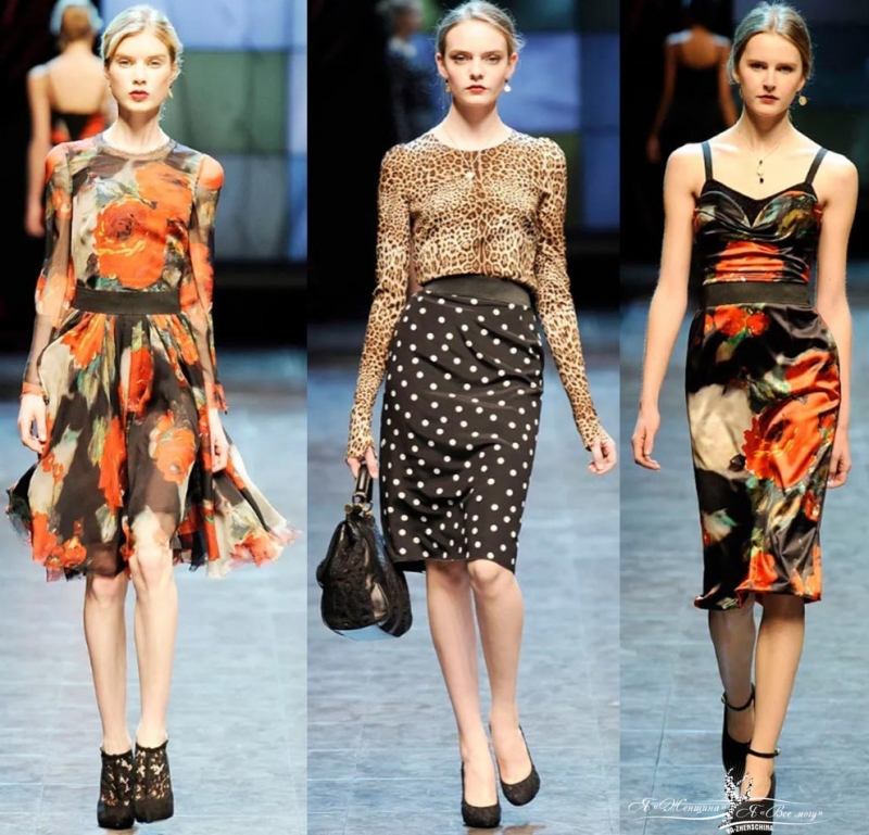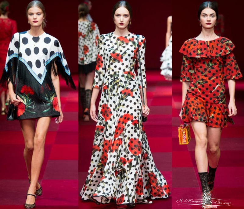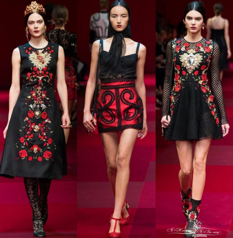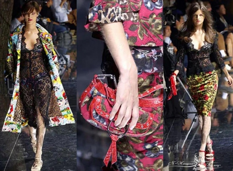 Самый классический Dolce & Gabbana, который только можно себе представить. Розы, микс принтов, горох, леопард, красный бархат, кружево, прозрачность.
