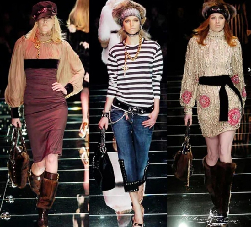 Коллекция проросла настолько глубоко в умы женщин, что даже сейчас в провинции женщины отдают предпочтение платьям с гобеленовым принтом, блестящим полосатым футболкам с люрексом, беретам со стразами, шелковым шарфикам и объемным брошкам.
