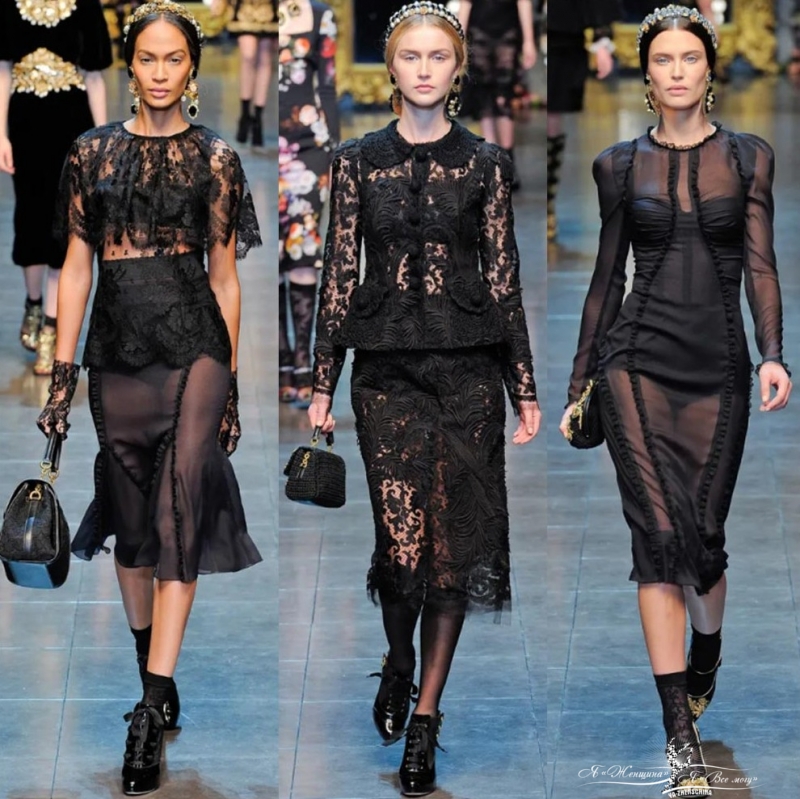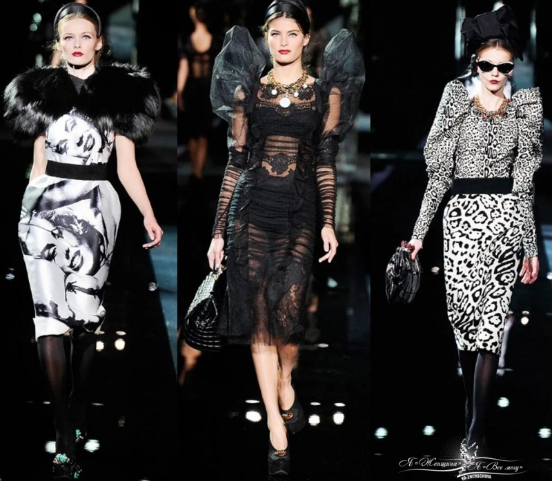 Dolce & Gabbana разрушает старомодную элегантность своим собственным брендом с подчеркнуто сексуальным стилем. В коллекции не было агрессивных, панковских, сексуально озабоченных элементов, которые Dolce & Gabbana часто привносит в шоу.
