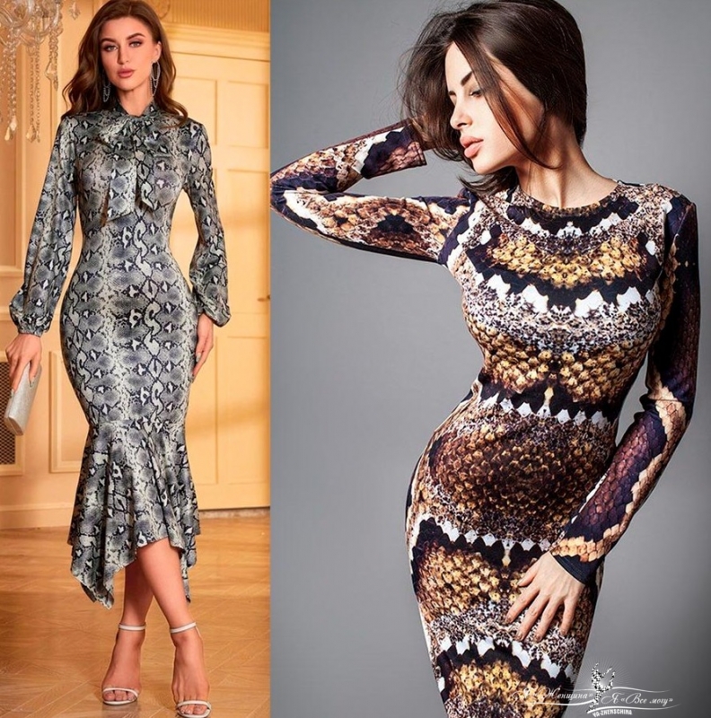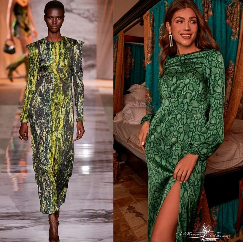 Отдельно хочется сказать про змеиный принт. Конечно же, на праздниках, посвященных 2025 году принт змеи будет на пике популярности. Платье в змеином принте может выбрать каждая женщина, главное подобрать цветовую гамму, которая подходит по тональности к вашему природному цветотипу.
