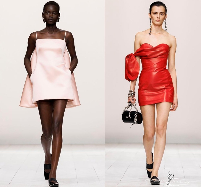 Очень примечательные платья получились у Stella McCartney, они тоже очень короткие, но каждое по-своему нарядное – одно полностью декорировано перьями и превращает вас в изящную птичку, другое платье на одно плечо и с драпировками, что создает изысканный элегантный образ. А вообще, любое мини-платье само по себе вызывает вау-эффект, поэтому можно выбрать модель в стиле минимализма, но из дорогой качественной ткани, которая сможет красиво смотреться и окажется максимально комфортной к телу.