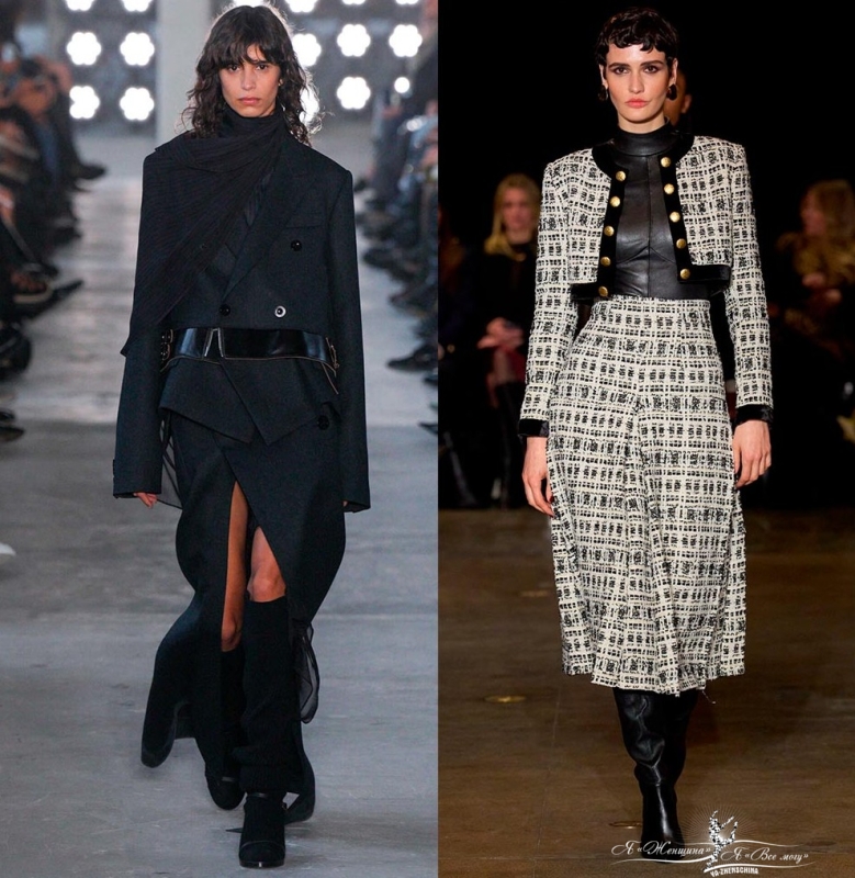 Стильно смотрятся в костюмах асимметричный крой и многослойность, сочетание женственности и строгости, элегантности и дерзости.