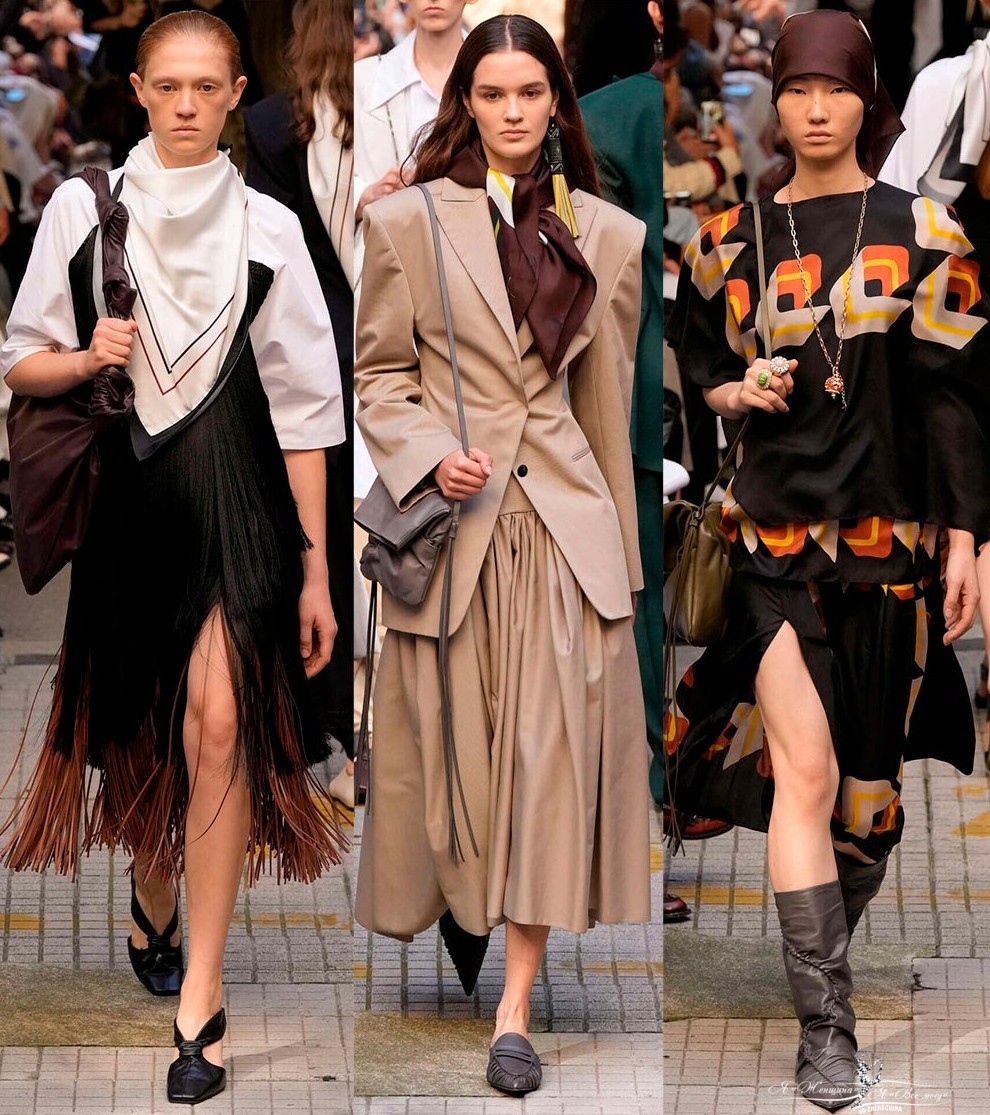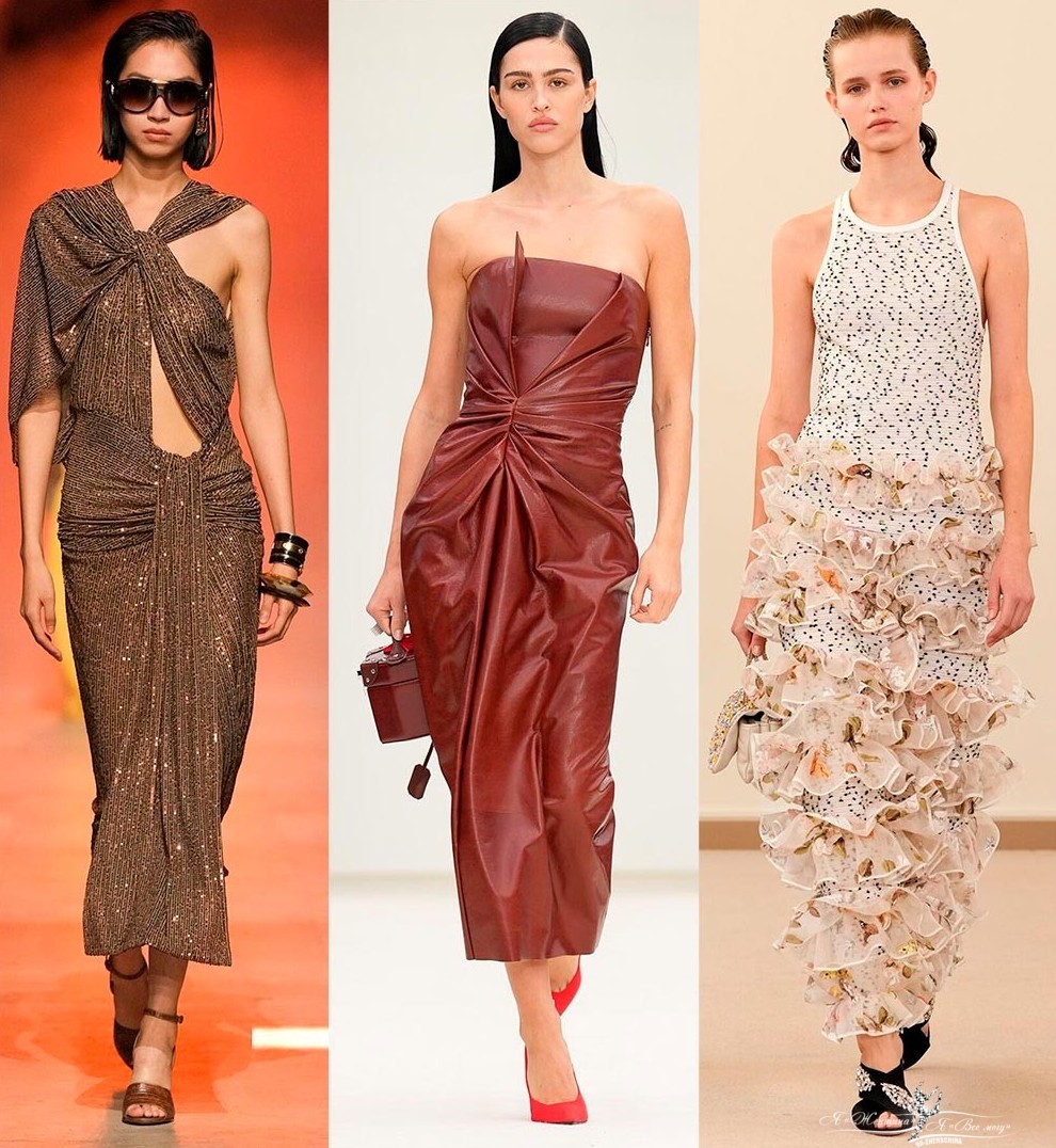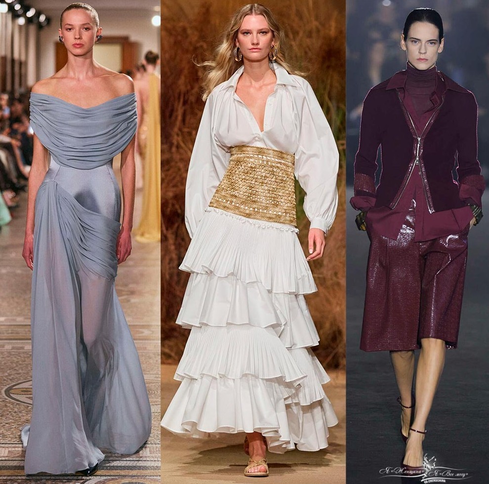 Возрождается низкая посадка, экстремально короткая длина, короткие приталенные жакеты, делается акцент на плечи, но это уже не только объемные плечи в мужском стиле, а своеобразные способы кроя или декора. Современные структурированные объемы подчеркивают выразительность силуэта и сохраняют свободу движений. Однако вы будете в тренде, если обратите внимание на образы с естественными женственными пропорциями.