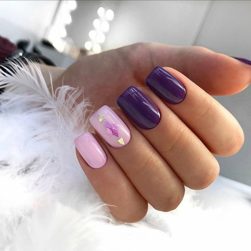 Фиолетовый зеркальный с матовым - очень стильное сочетание. Также такой вариант можно сделать с зеркальным синим.