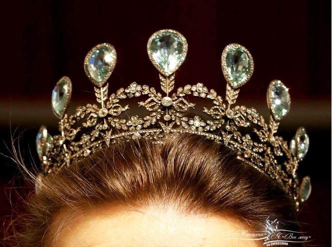 Другим лотом на аукционе Christie’s в мае этого года была представлена удивительная тиара Faberge из девяти аквамаринов грушевидной формы и бриллиантов. Великая Герцогиня Александра Мекленбург-Шверинская, урожденная принцесса Кумберланд-Брауншвейг-Люнебургская, внучка датского короля Кристиана IX и праправнучка английского короля Георга III получила ее в качестве свадебного подарка от своего будущего мужа (читайте также: Самые красивые королевские тиары современности).