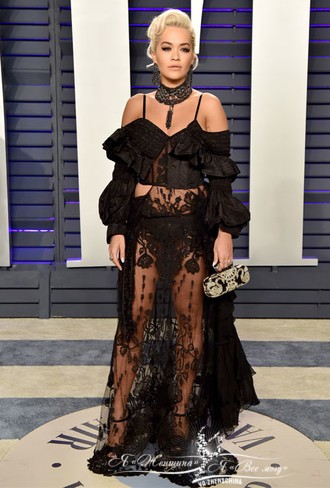 Китчевые наряды Риты Оры поражают либо своей несуразностью, либо чрезмерной открытостью. В наряде для вечеринки Vanity Fair воедино сплелось сразу все: корсетный топ в викторианском стиле, прозрачная вуаль с вышивкой и массивные украшения, окончательно перегрузившие образ. Но стоит отметить: такой стиль уже давно стал самым любимым и комфортным для певицы – а значит свою роль открытое бельевое платье выполнило на отлично.
