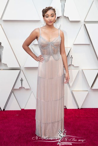 21-летняя актриса Амандла Стенберг старается не отставать от более опытных коллег и тоже пробует эпатаж на вкус: на прошедшей премии «Оскар» девушка появилась в нюдовом платье от Miu Miu, декорированном тонкими цепочками.