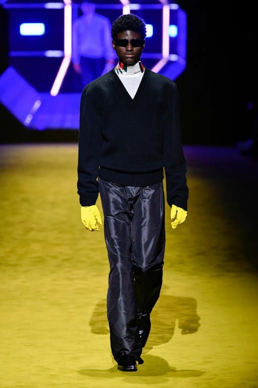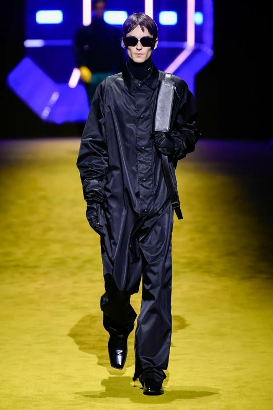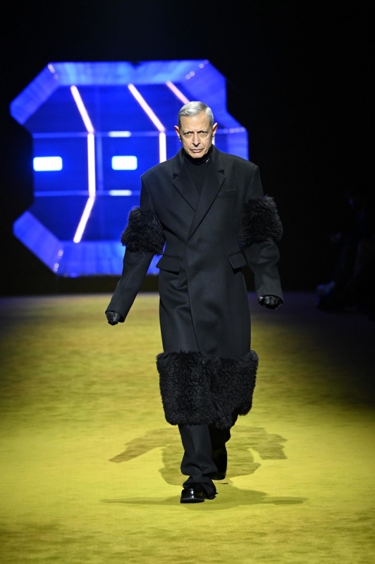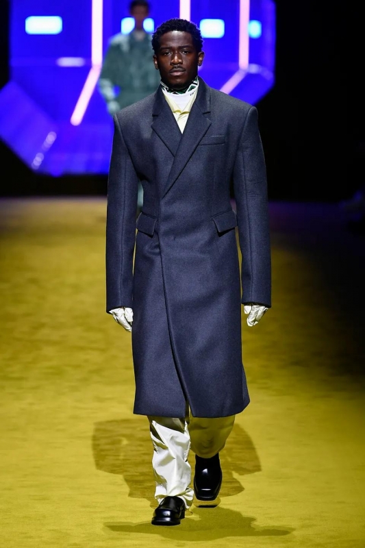 Буквально несколько минут назад в Милане завершился показ новой мужской коллекции Prada, созданной под руководством Миуччи Прада и Рафа Симонса. В этом сезоне дизайнерский дуэт решил привлечь к шоу не только ведущих моделей, но и звезд киноиндустрии: так, первым на подиум вышел Кайл Маклахлен в потрясающем черном пальто и дутых брюках, а за ним — Эйса Баттерфилд, Томас Сэнгстер и Джефф Голдблюм. Звездный десант в прямом и переносном смысле — декорации, а также сами образы отсылали к моде будущего, картине Кубрика «Космическая одиссея», фильму «Гаттака» Эндрю Никола и «Солярису» Тарковского.